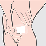 4Align the center of the dressing with the center of the wound, press the part of the adhesive surface that has removed the release liner from the inside out